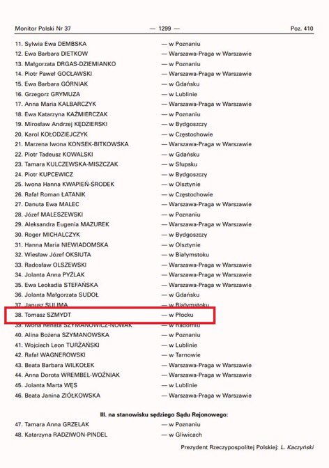 ‼️Nominacje na funkcje sędziego Sądu Okręgowego w Płocku dla Tomasz Szmydt podpisał Prezydent Lech Kaczyński 20/04/2006 roku